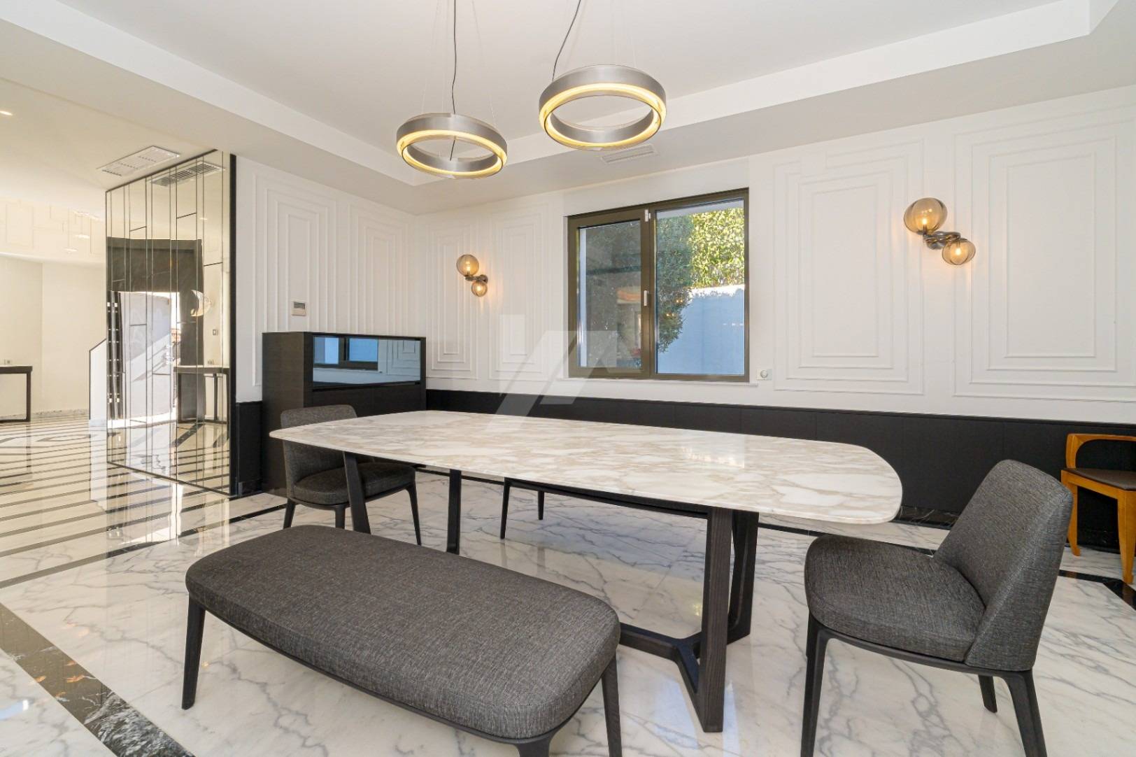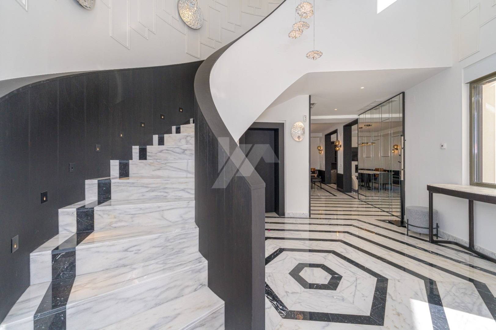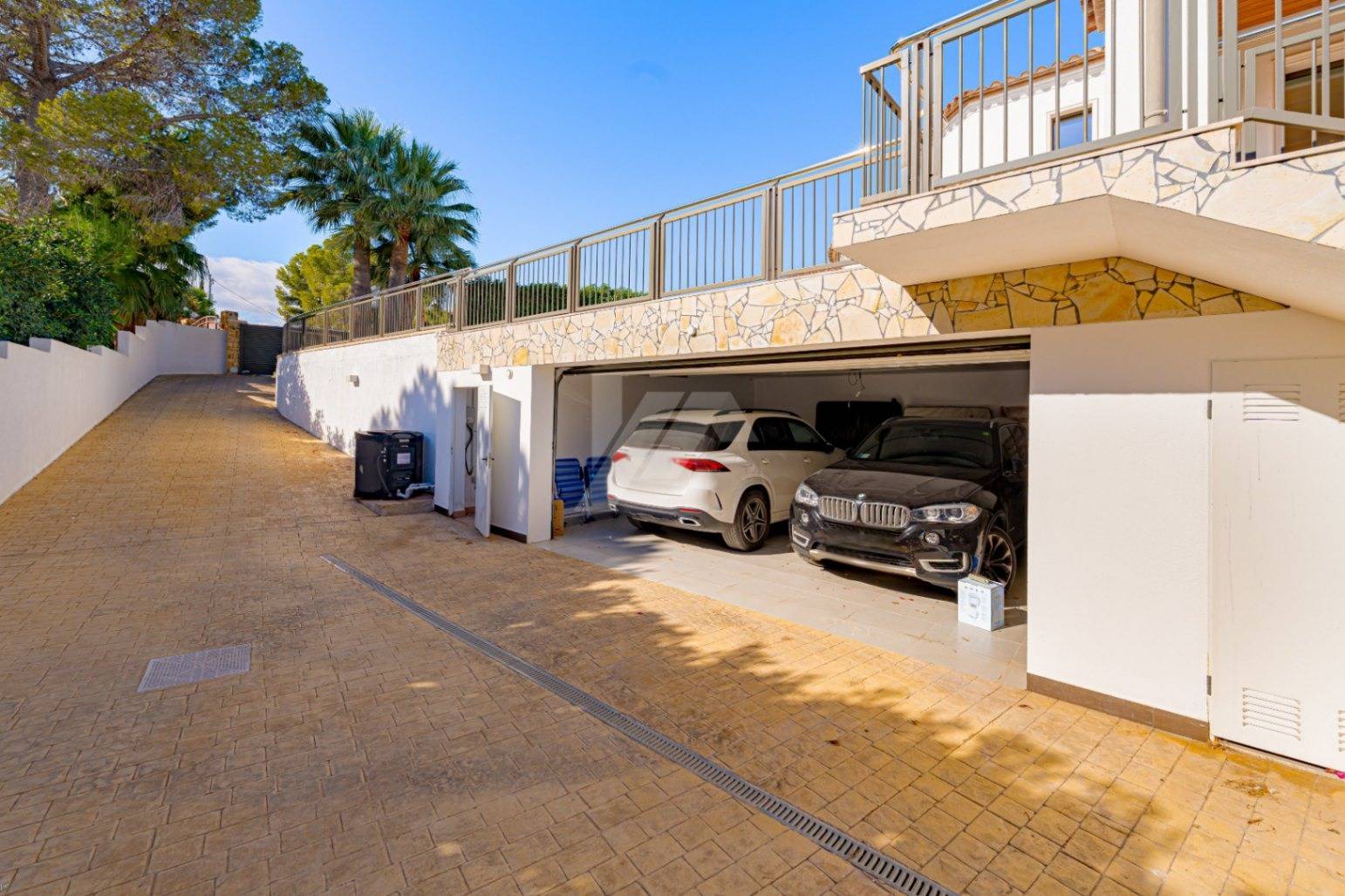 La propiedad está equipada con los más altos estándares de calidad, incluyendo aire acondicionado por conductos y split para calefacción y refrigeración, suelo radiante, paneles solares y persianas de seguridad automatizadas en toda la casa. En el exterior, encontrará una piscina climatizada con cubierta térmica, un baño exterior adicional, una amplia terraza, un garaje cerrado para dos vehículos, aparcamiento adicional y una sala de máquinas. La villa fue completamente renovada en 2021 y se presenta en impecables condiciones.