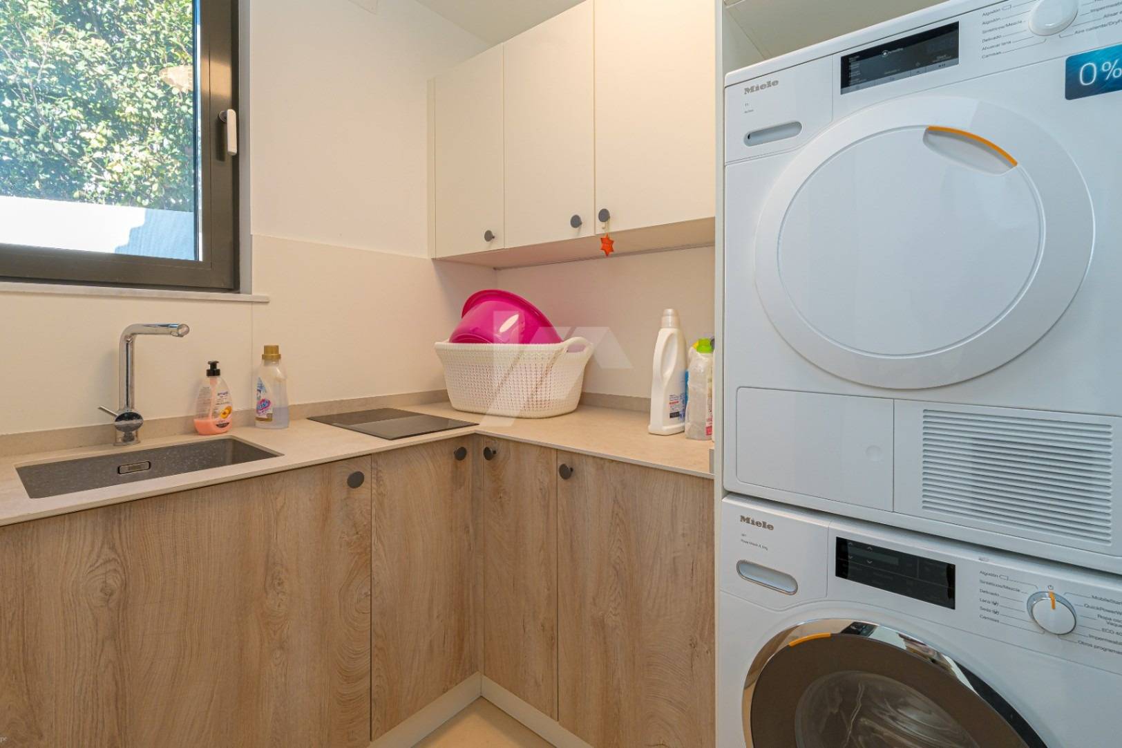 La planta principal se distribuye en torno a un amplio recibidor que conecta las estancias principales. Un amplio espacio diáfano combina una elegante sala de estar, un comedor y una moderna cocina totalmente equipada, todo con acceso directo a un porche cubierto y a la piscina de 8 x 4 metros. Una práctica despensa se encuentra junto a la cocina, mientras que un aseo de invitados y un lavadero independiente aportan comodidad a diario. Esta planta también cuenta con dos espaciosos dormitorios dobles, cada uno con su propio baño en suite.