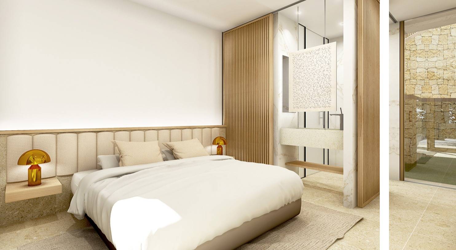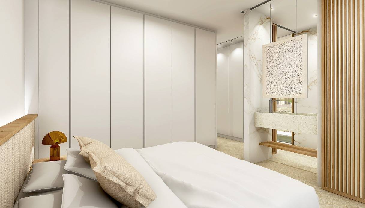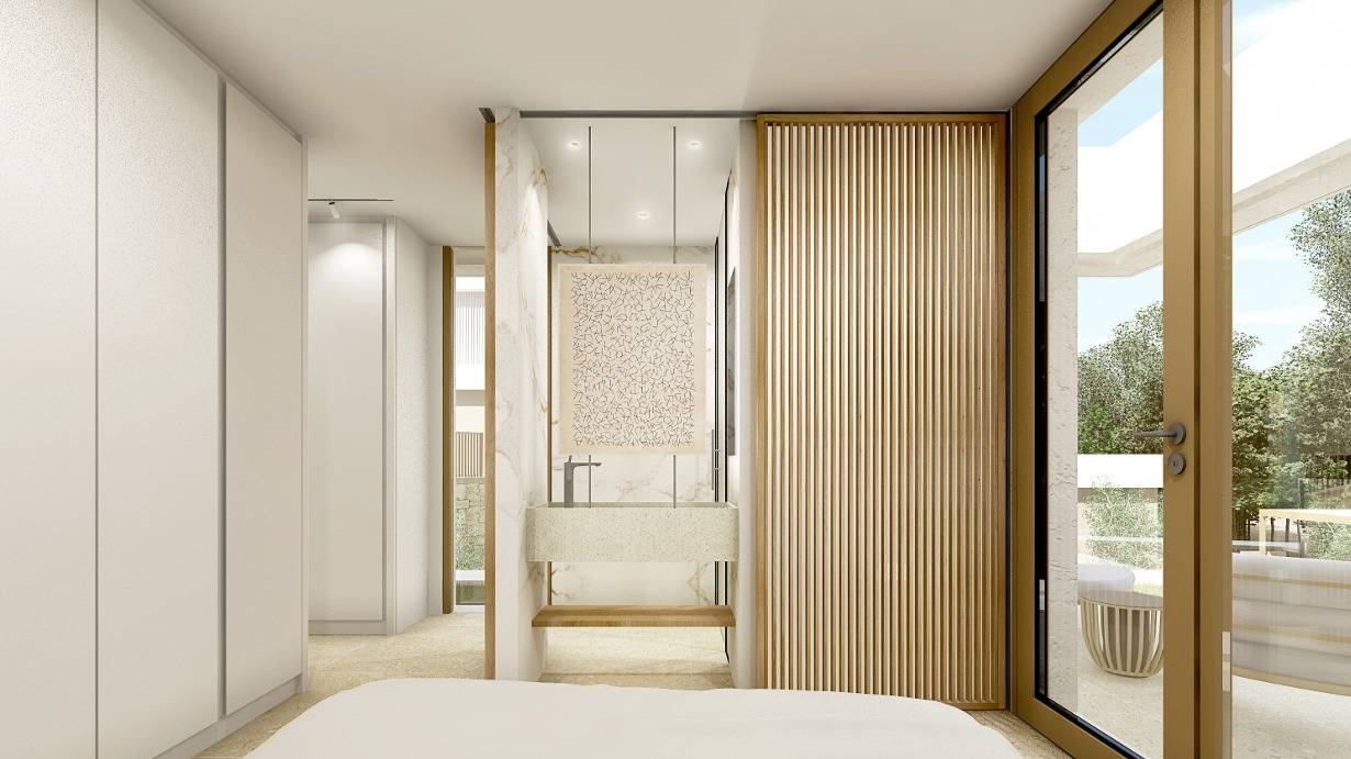 La villa está cuidadosamente distribuida en tres plantas, diseñadas para maximizar el confort y la funcionalidad. La zona de estar principal se encuentra en la planta baja, donde se halla un luminoso y espacioso salón que se abre a amplias terrazas, ideales para comer al aire libre y relajarse. El dormitorio principal también se encuentra en esta planta, con acceso directo a las terrazas y cerca de la piscina, creando una armoniosa integración entre el interior y el exterior. Además, hay otros dos dormitorios de buenas dimensiones, cada uno con su propio baño privado, lo que garantiza un alto nivel de privacidad y comodidad tanto para residentes como para invitados.